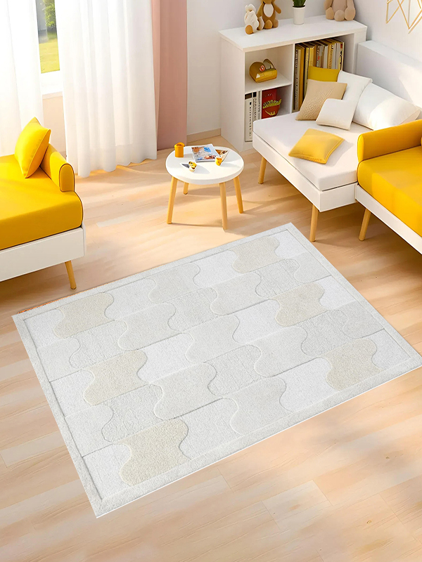 Introduce architectural softness to your space with Ivory Mesh, a sculptural area rug defined by its interlocking square grid and warm neutral tones. Woven in a harmonious palette of soft beige and ivory, the raised texture creates a subtle interplay of light and shadow that complements modern, minimalist, and transitional interiors. Designed for comfort and everyday durability, this rug is a perfect anchor for bedrooms, living rooms, hallways, or creative workspaces. Its geometric precision offers visual rhythm, while the neutral hues allow it to blend beautifully with wood accents, clean lines, and cozy textiles.