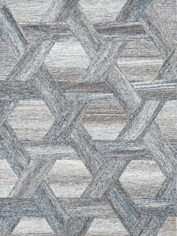 Elevate your interior with this visually striking area rug, featuring a tessellated pattern of hexagons and parallelograms in sophisticated shades of gray, blue, and beige. The interlocking design creates a subtle three-dimensional effect, adding depth and movement to your space. Perfect for modern homes, this rug blends artistic geometry with everyday comfort.