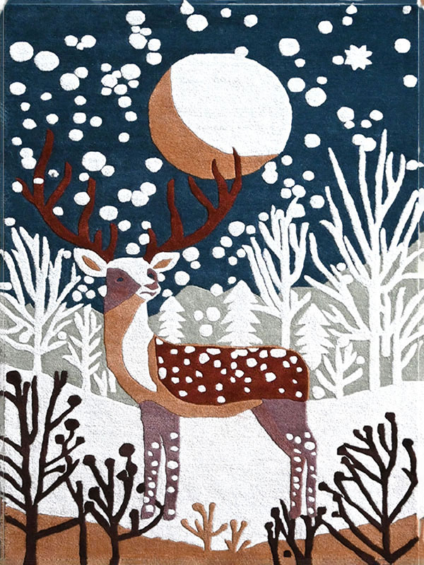 Add charm and warmth to your home with this elegant Winter Deer Rug. Featuring a serene woodland scene with a majestic deer, snowy trees, and moonlit night, this rug combines nature-inspired artistry with modern craftsmanship. Hand-tufted with premium wool, it offers both durability and a soft touch, making it suitable for high-traffic areas as well as cozy corners. Perfect for holiday décor or year-round use, this rug is a timeless addition to any home