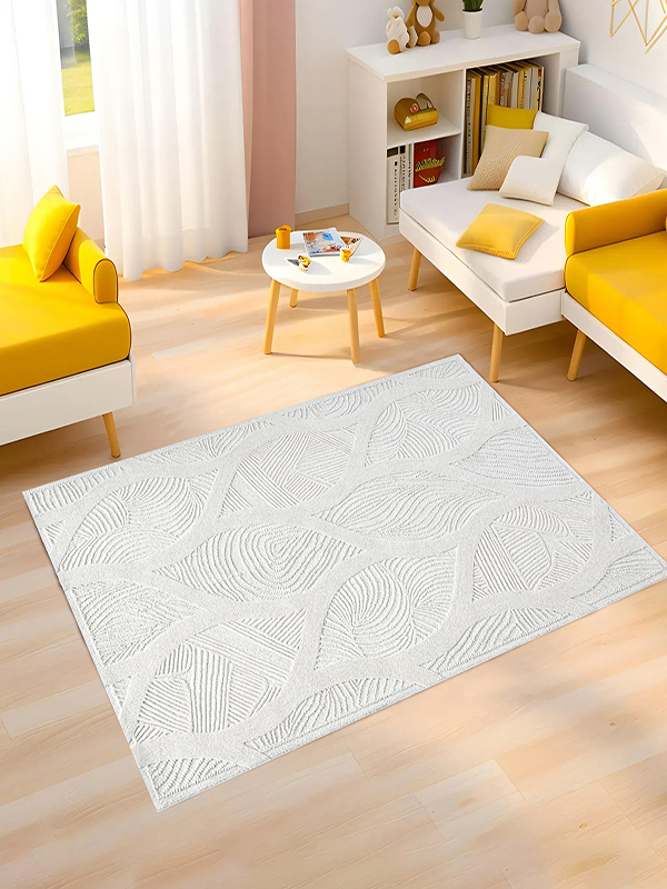 Elevate your space with our Whisperleaf Textured Rug, a serene blend of artistry and tactile elegance. Inspired by nature’s quiet geometry, this rug features delicately layered leaf motifs etched in soft concentric curves and wave-like lines. The monochrome palette of whites and light grays creates a calming foundation for any room, while the raised texture adds depth and dimension. Whether placed in a minimalist loft or a cozy reading nook, this rug invites both visual intrigue and everyday comfort.