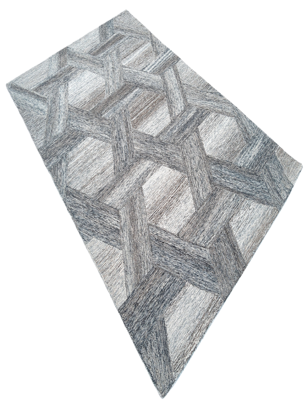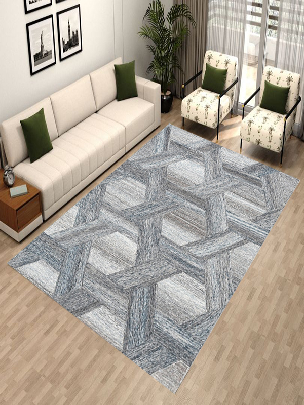 Elevate your interior with this visually striking area rug, featuring a tessellated pattern of hexagons and parallelograms in sophisticated shades of gray, blue, and beige. The interlocking design creates a subtle three-dimensional effect, adding depth and movement to your space. Perfect for modern homes, this rug blends artistic geometry with everyday comfort.