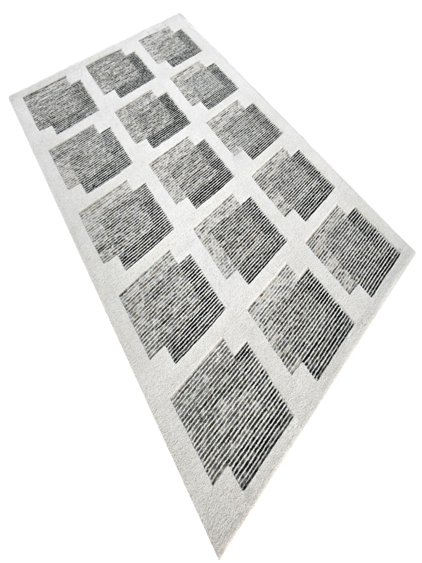 Add depth and dimension to your space with this modern abstract grid rug, designed with a rhythmic arrangement of overlapping rectangles. Each shape features a dual-tone texture—light and dark sections that create a layered visual effect. The neutral palette of gray, beige, and off-white makes it a versatile choice for contemporary, minimalist, or industrial interiors.