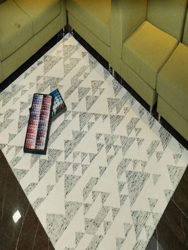 Elevate your space with this Hand-Tufted Geometric Triangle Rug, designed to bring a calm, contemporary aesthetic into your home. Featuring layered triangular motifs in soothing neutral tones, this rug adds texture, balance, and understated elegance—ideal for modern and minimalist interiors.