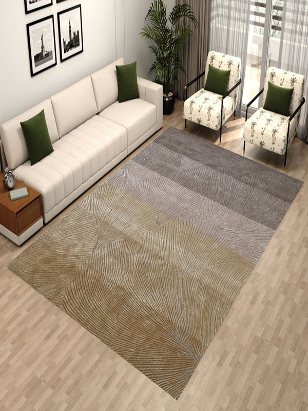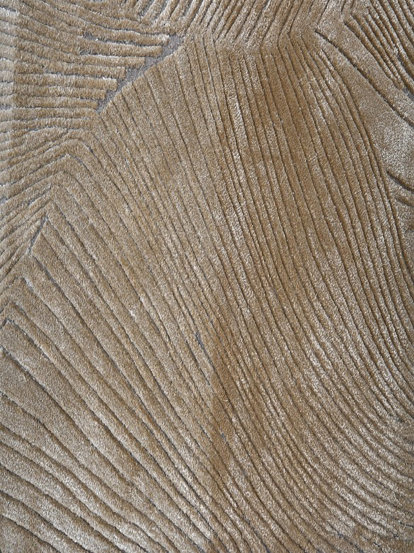 Inspired by natural forms and organic movement, the rug showcases overlapping, scalloped motifs with finely etched linear detailing. The harmonious palette of taupe, sand, beige, and soft gold creates a serene, contemporary look that pairs beautifully with both modern and classic interiors.