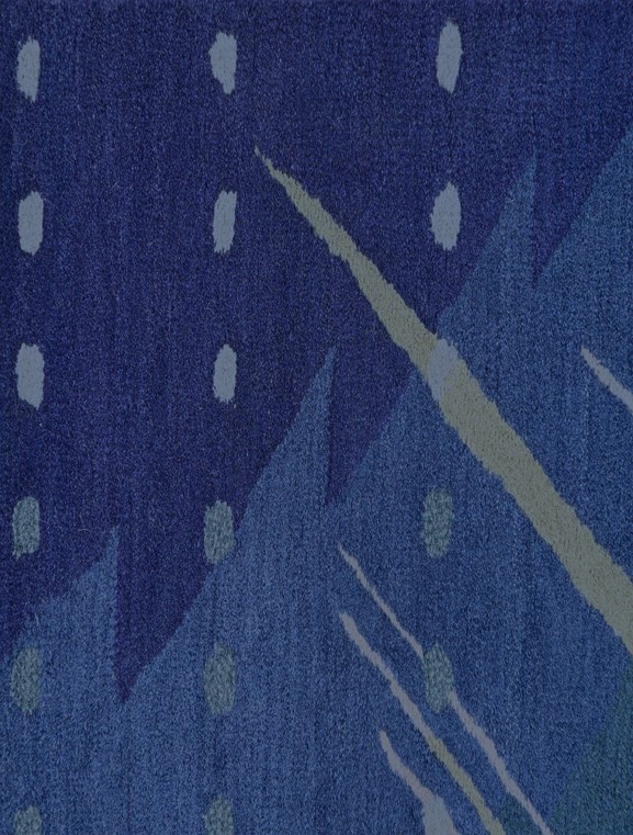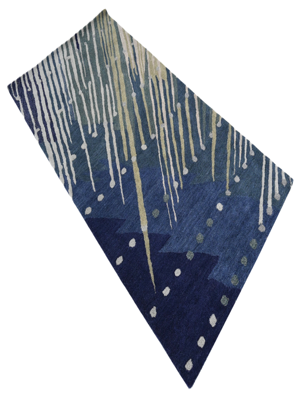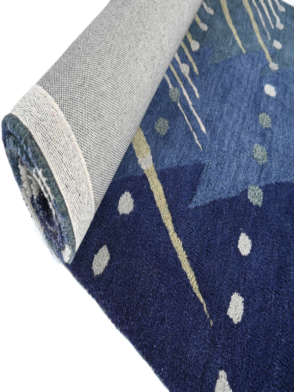 Bring a touch of modern artistry into your space with this striking area rug. Featuring a bold pattern of cascading lines and dotted accents, the design captures the dynamic energy of movement and flow. Shades of deep navy, ocean blue, teal, and soft ivory blend seamlessly to create a contemporary yet timeless palette that suits a variety of interiors. Crafted from premium, durable fibers, this rug offers both style and comfort underfoot. The textured weave enhances the visual depth of the design while ensuring long-lasting resilience, making it perfect for high-traffic areas like living rooms, bedrooms, or home offices.