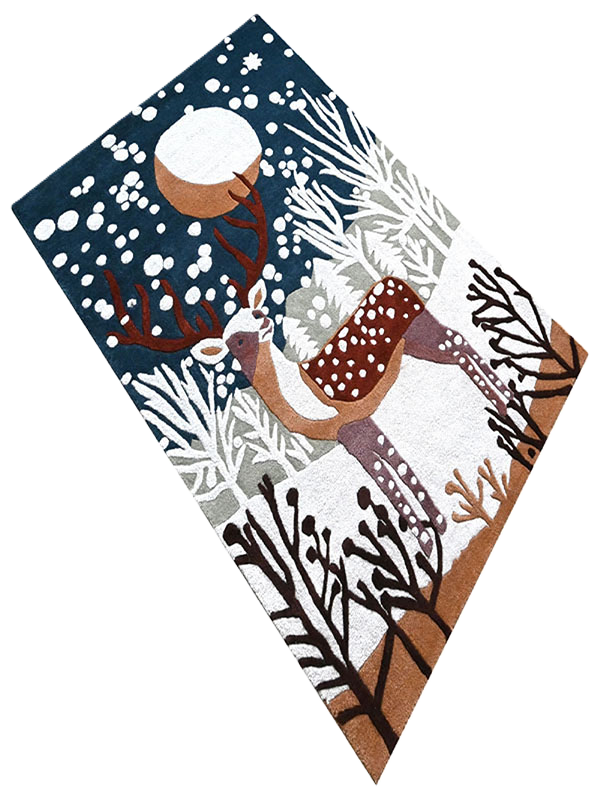 Add charm and warmth to your home with this elegant Winter Deer Rug. Featuring a serene woodland scene with a majestic deer, snowy trees, and moonlit night, this rug combines nature-inspired artistry with modern craftsmanship. Hand-tufted with premium wool, it offers both durability and a soft touch, making it suitable for high-traffic areas as well as cozy corners. Perfect for holiday décor or year-round use, this rug is a timeless addition to any home